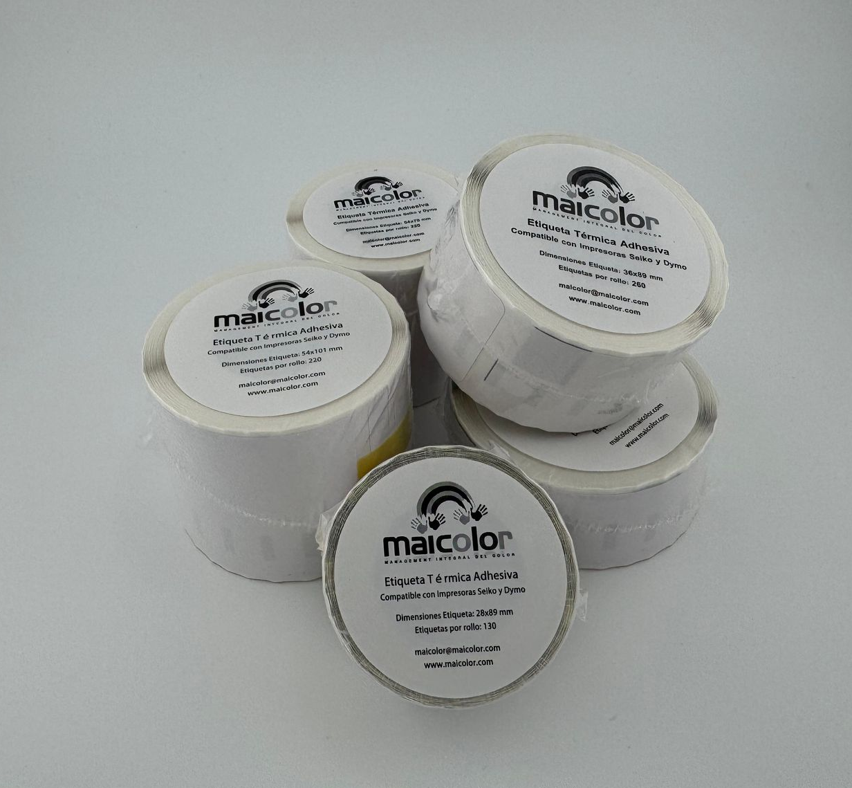 A Maicolor é líder na Espanha em rolos de etiquetas para impressoras térmicas Seiko SLP e Dymo. Temos estoque disponível para entrega rápida e oferecemos produção personalizada, adaptando-nos às necessidades de cada cliente, sempre a preços competitivos.